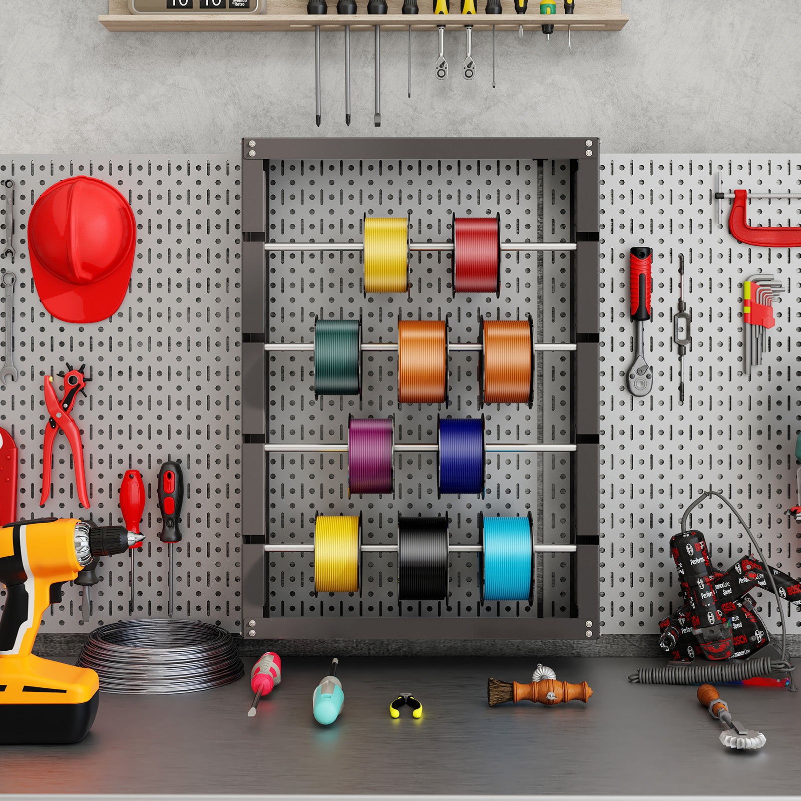● Heavy-Duty Capacity: This wire rack is equipped with four 0.6” diameter galvanized metal rods each designed to hold a maximum load of 65 lbs. Whether for heavy-duty electrical wires or lightweight ribbons this rack handles it all effortlessly.